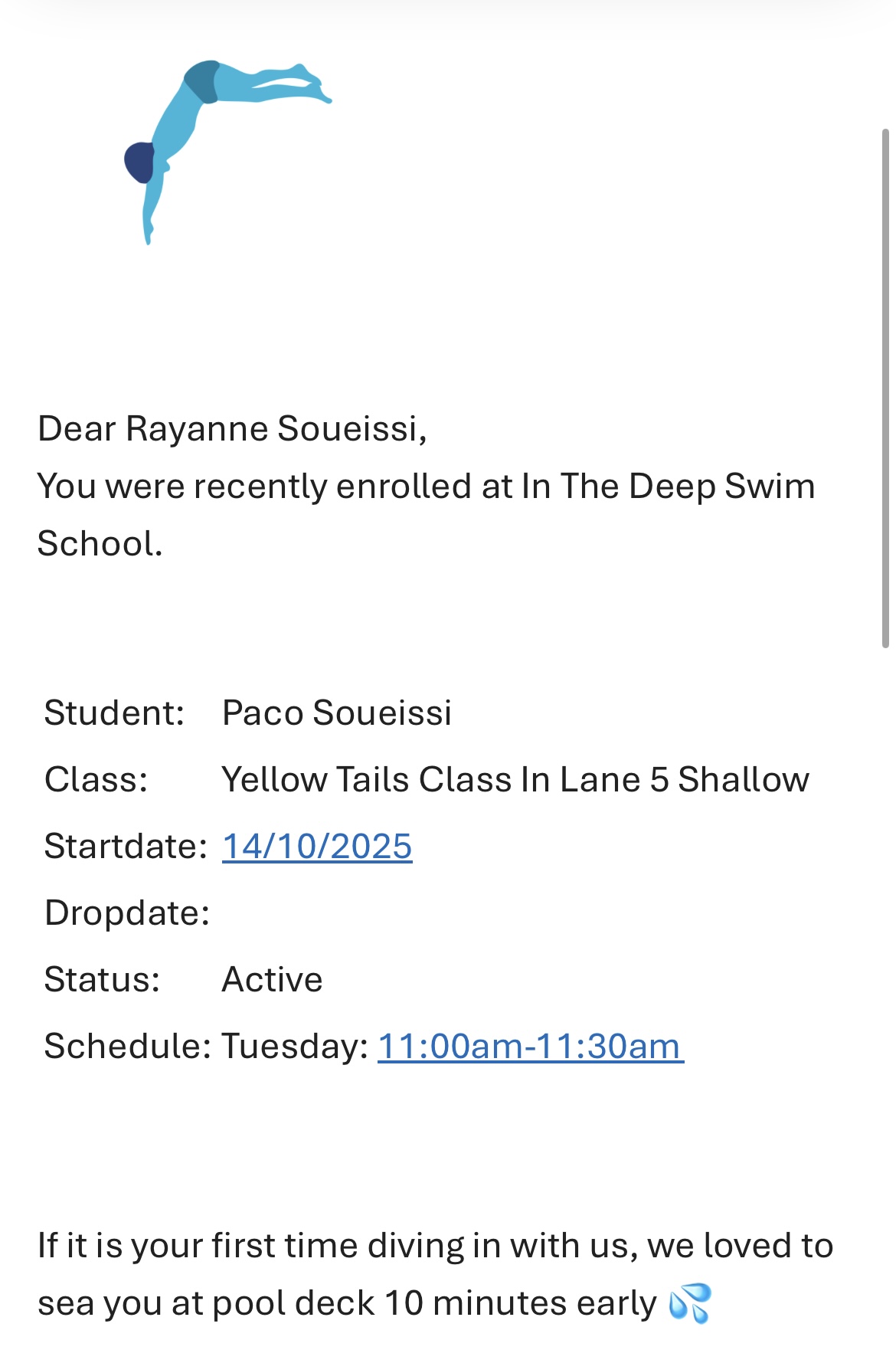 If you're having trouble with enrolment or can't find a suitable class, contact us at info@inthedeep.com.au - we're happy to help you get your swimmer into the perfect class!