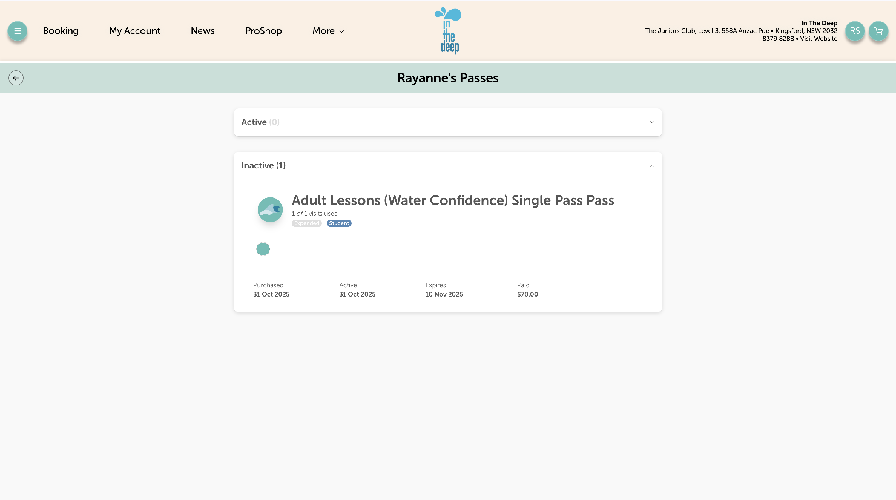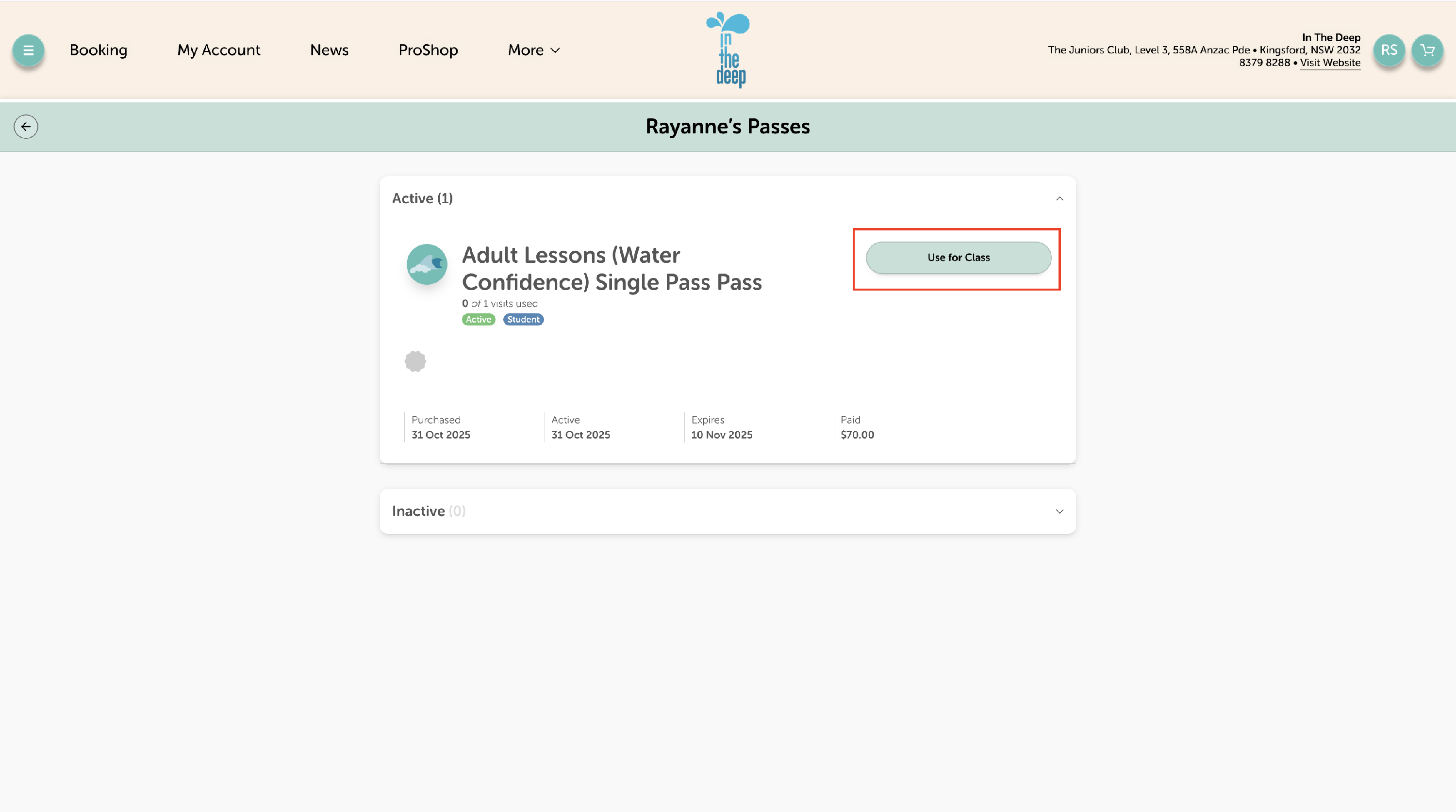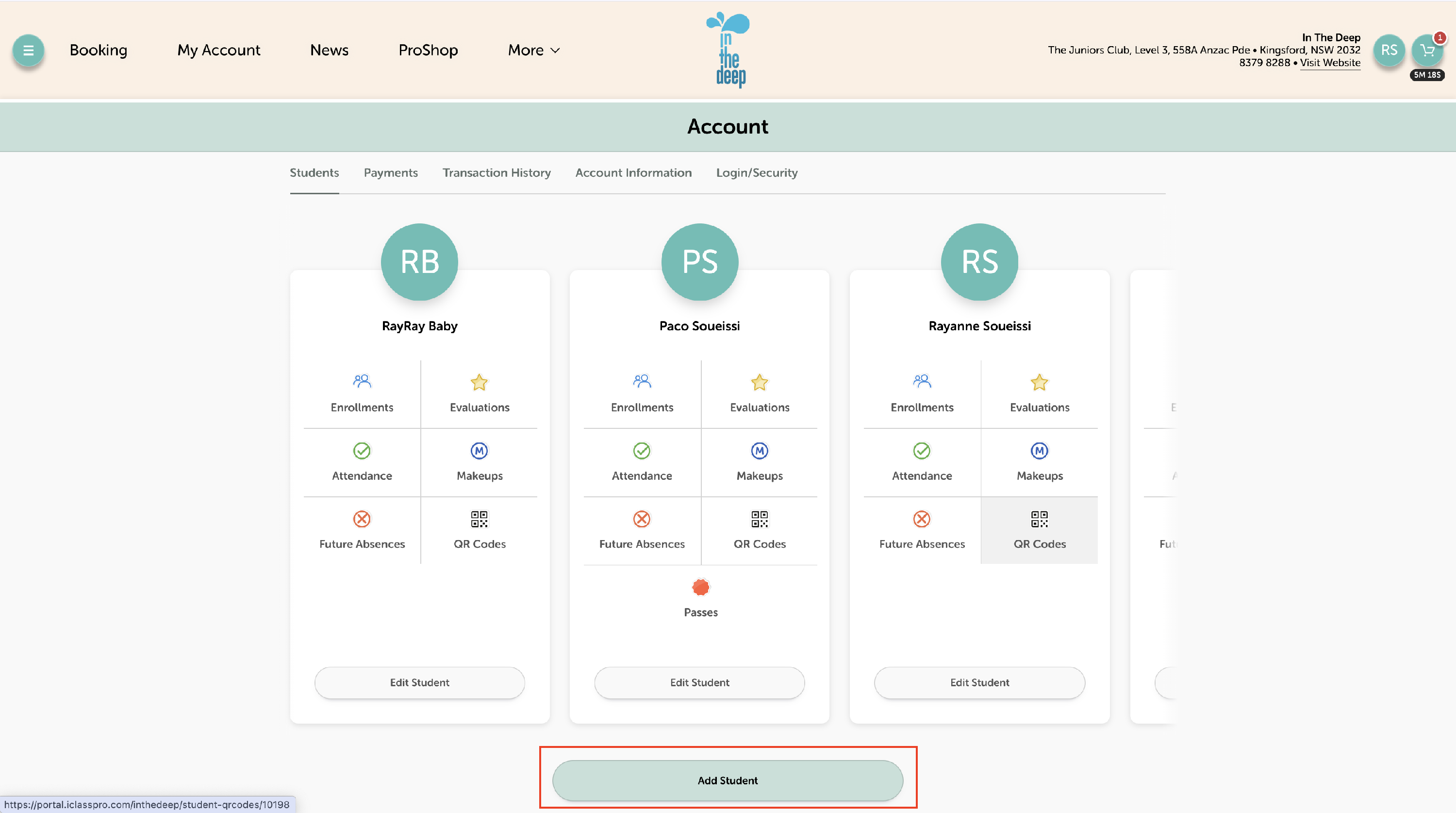 - Click 'Select Student' to book the pass for the right swimmer