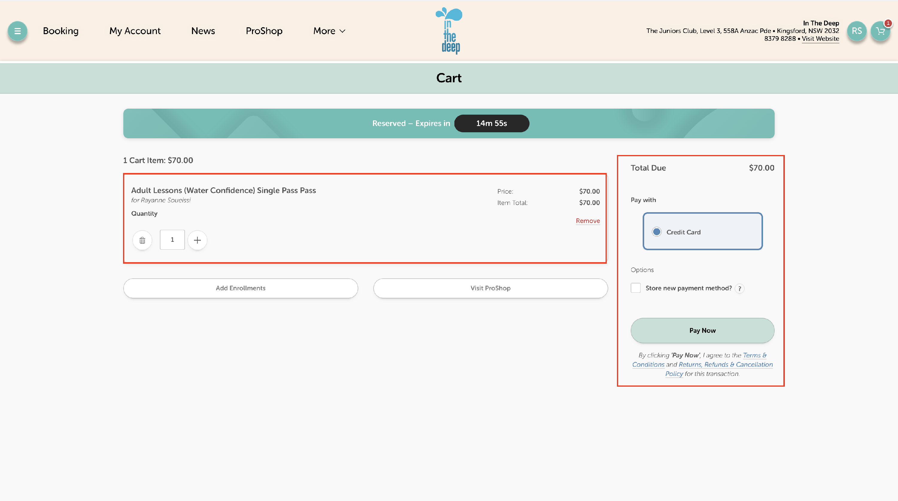- Hit 'Submit' to pay for your swimming lessons