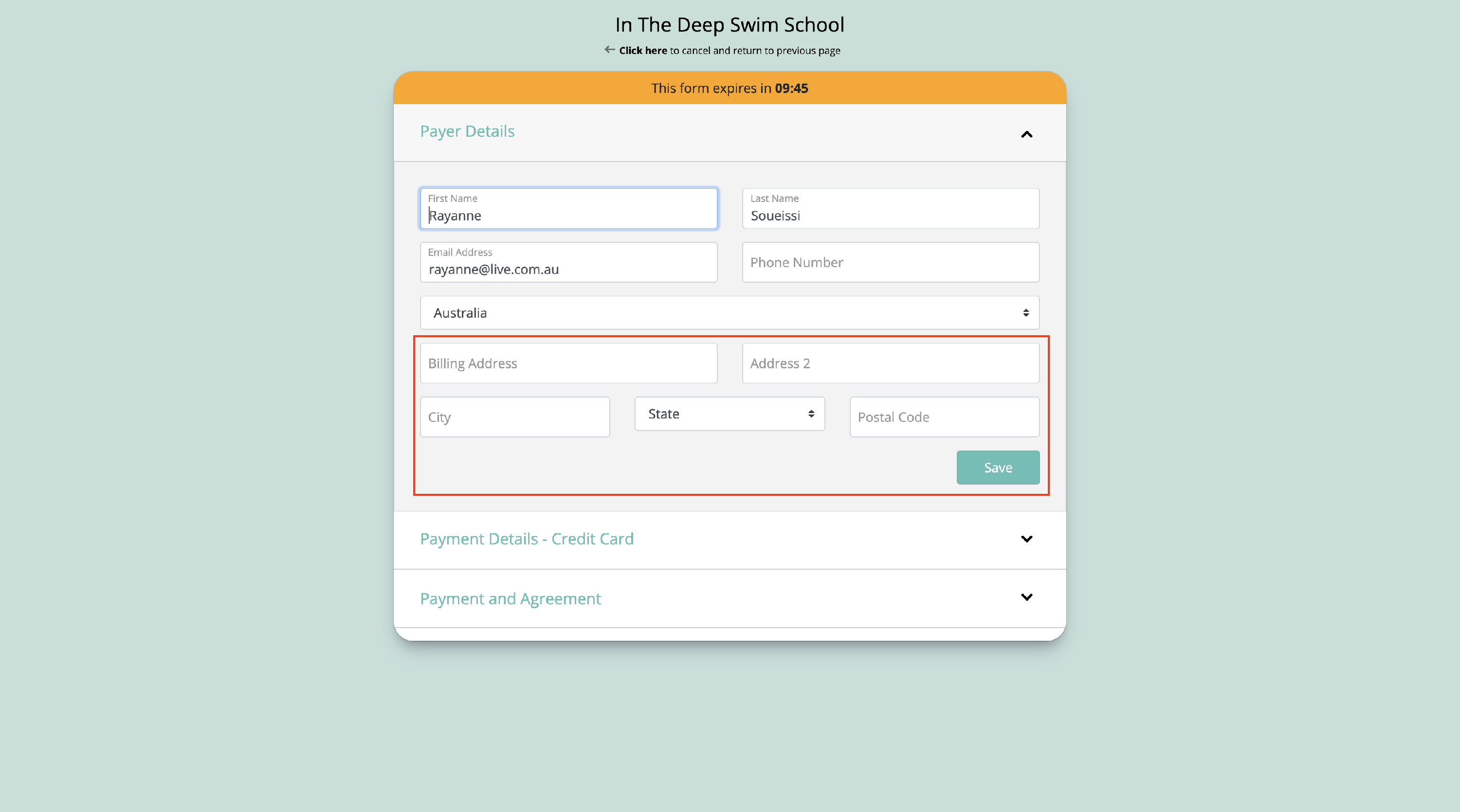 - Switch to 'Payment and Agreement' and complete the inCapture form