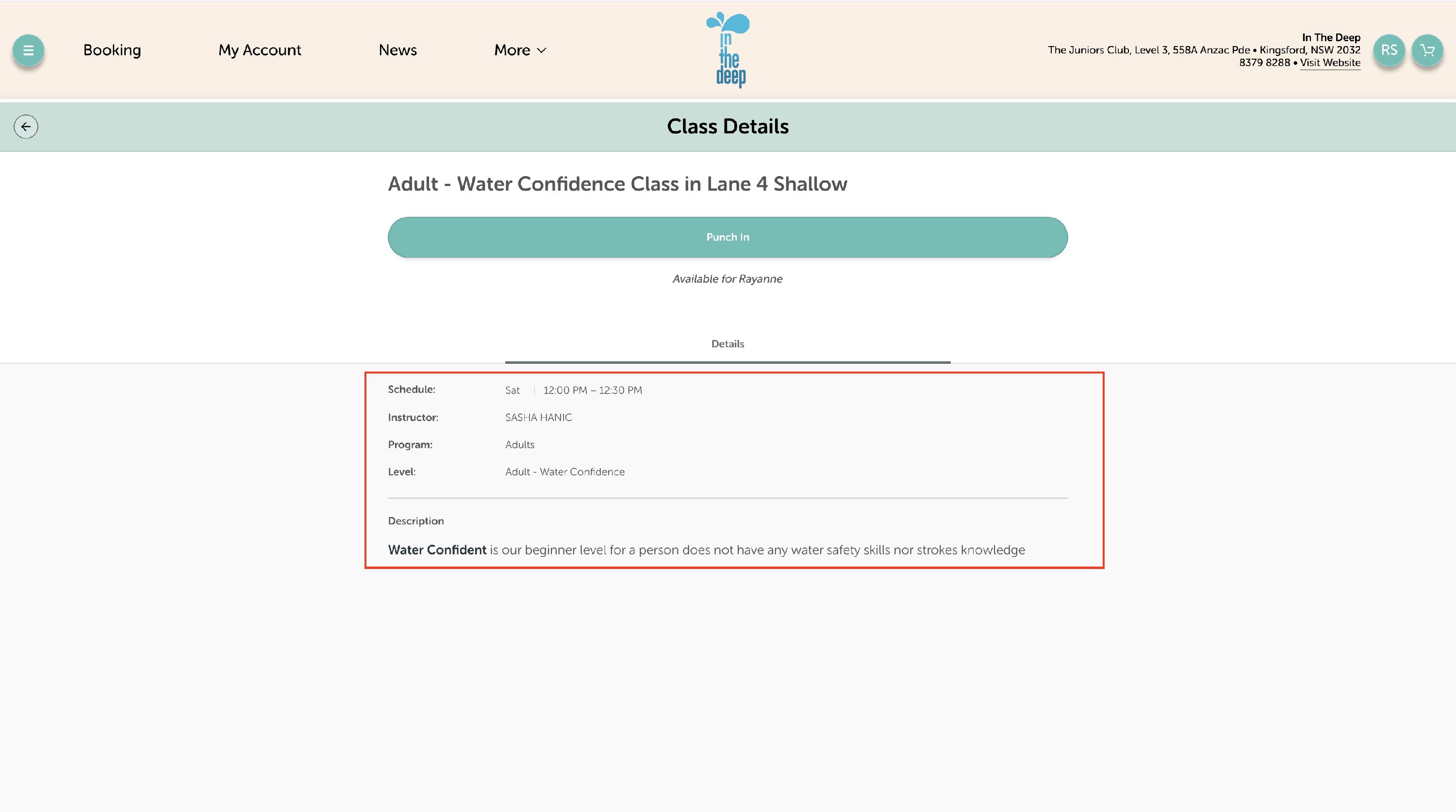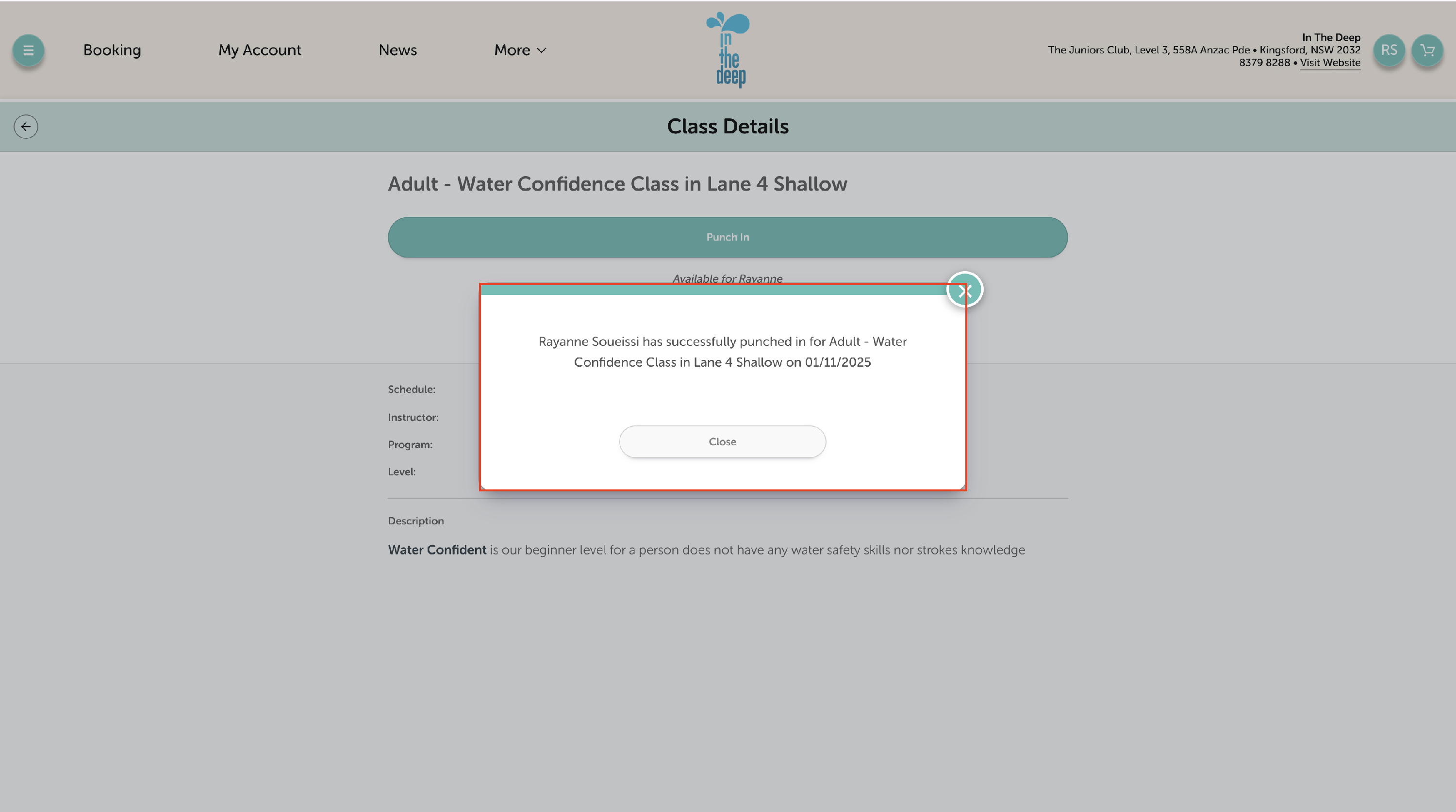 - Double-check the class details - once you've booked in, you can't cancel or change it!